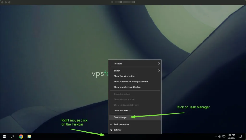 To open Task Manager, right-click on the taskbar at the bottom of your screen and select Task Manager. Alternatively, press Ctrl(Control) + Shift + Esc