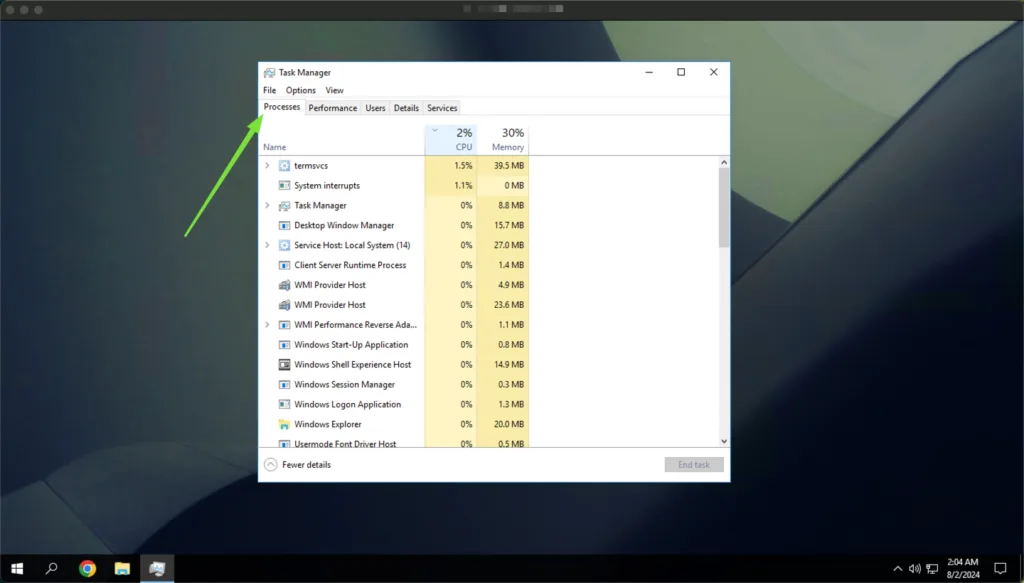 Alternatively, navigate to the Processes tab on your Task Manager. There you can find a list of all processes running on your system in real-time. By clicking on the CPU or Memory columns, you can quickly sort the list and double-check, what applications are using the most of your system’s resources.