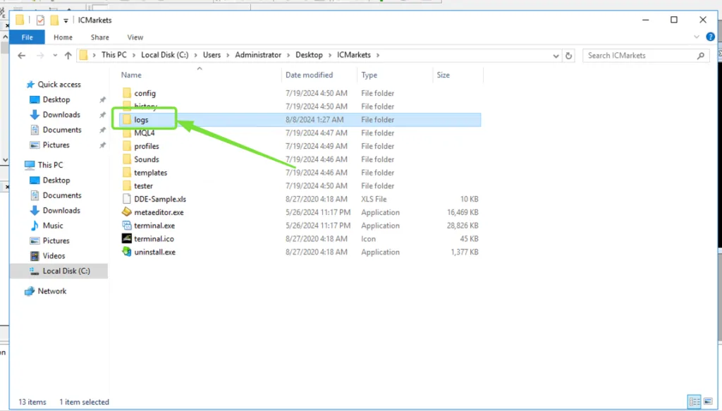 Navigate to the Logs folder. This is where all the log files generated by MT4 are stored. Here you will see a list of log files named with dates.