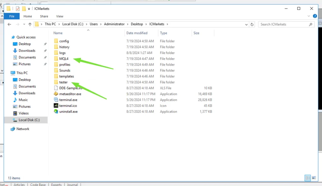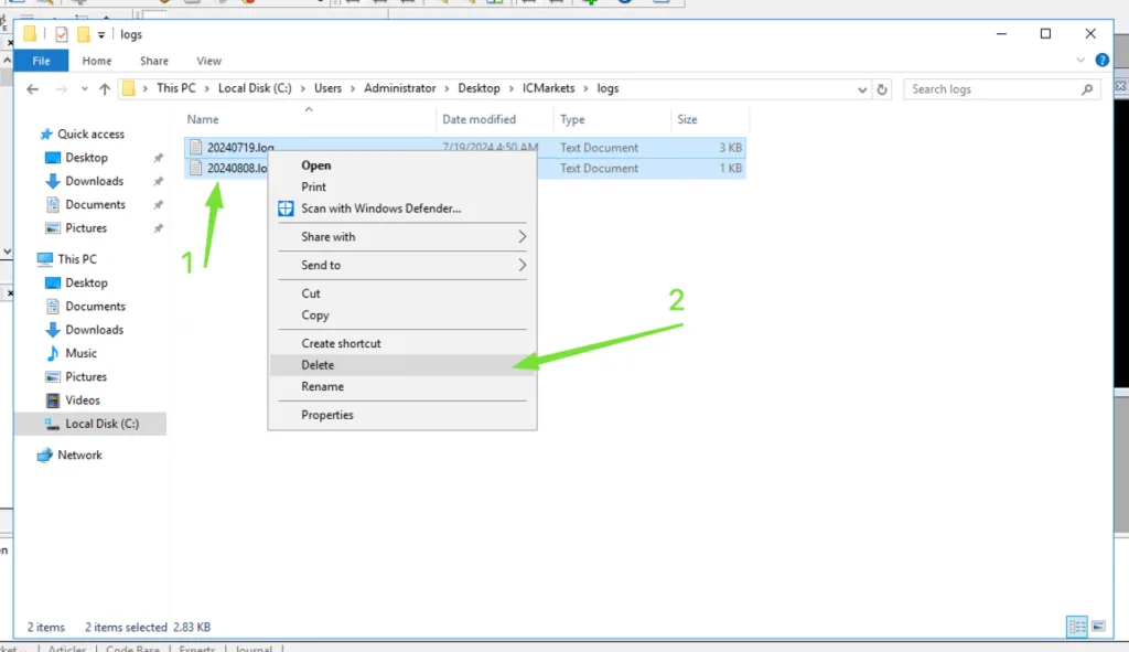 Additionally, you can navigate to the MQL4 -> Logs and Tester -> Logs folders to repeat the same process of deleting unnecessary log files.