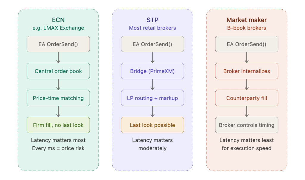 The broker’s execution model determines whether VPS latency improvements translate into better fills or merely faster confirmation of the same outcome. A trader who spends $50 per month on a colocated VPS should understand whether their broker’s architecture actually benefits from that proximity.