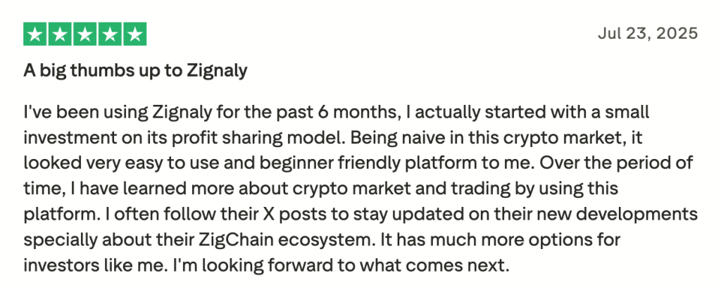 Zignaly customer review. Source: Trustpilot