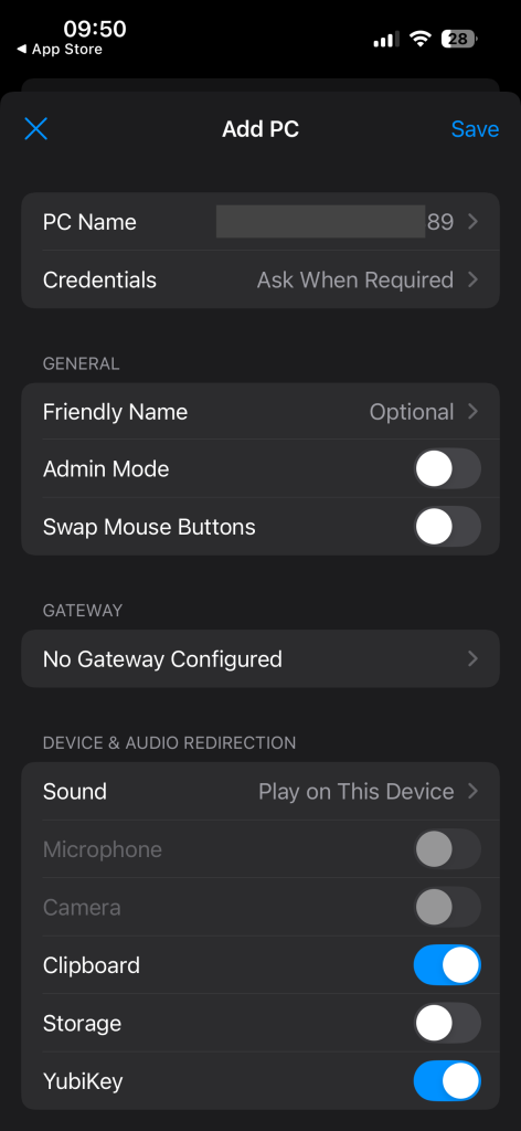 Tap on “PC Name. Paste the IP address of your new server from service activation email in the following format: x.x.x.x:13389 where x is servers IP address, do not forget to specify port after IP.