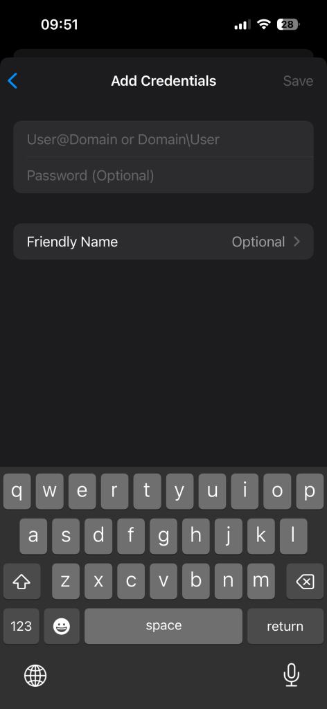 After entering your server’s IP address, tap on “Credentials” and select “Add Credentials”.